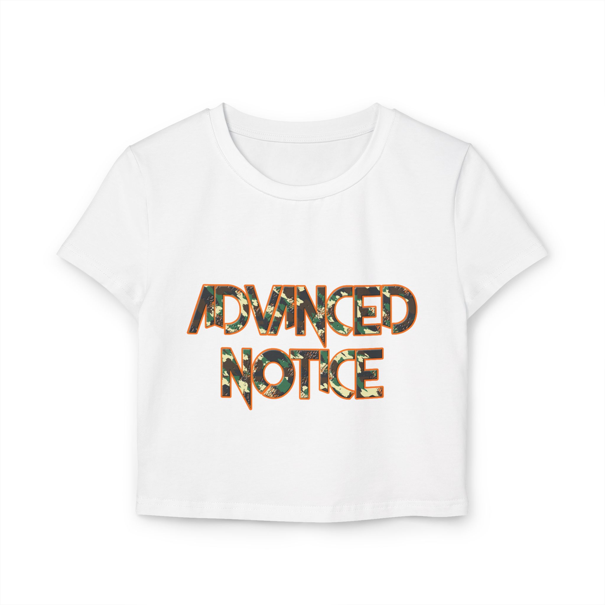 Be the first to review “Advanced Notice CAMO Women’s Baby Tee”